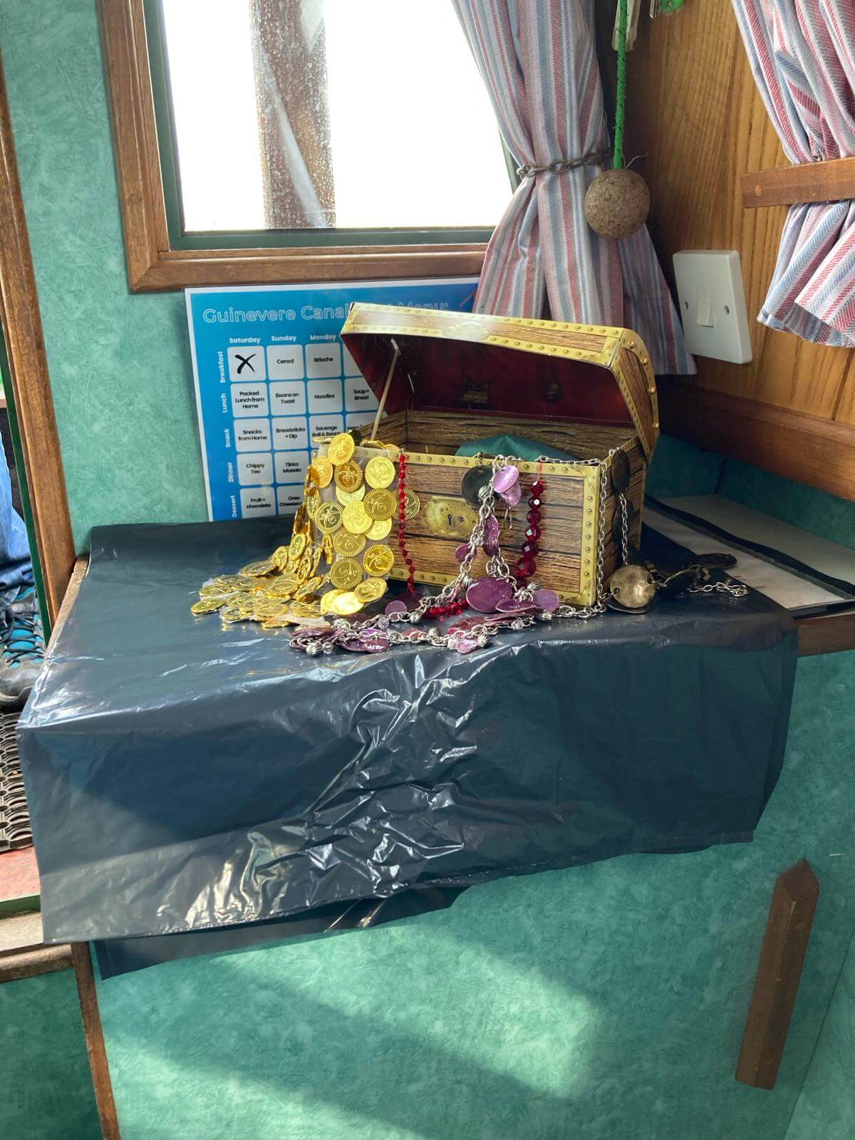 And a huge, huge shout out to our Ship’s crew, Peg Leg Morgan and Admiral (or should that be Captain?) Morgan for ably running the boat through choppy waters and negotiating the high seas and storms, and running a happy deck; and for all the wonderful activities that were laid on for the shipmates and fantastic decorations which adorned Guinevere and as you can see really looked the part.